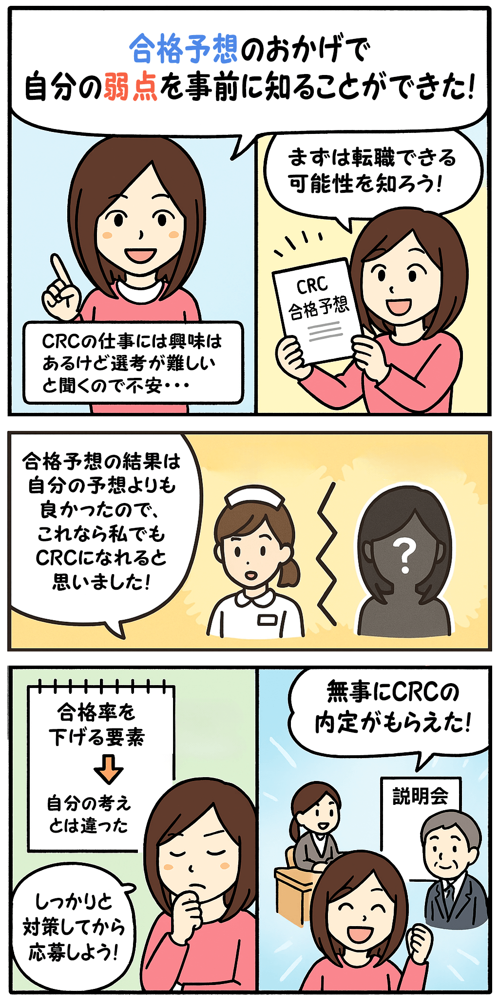 その結果、無事に内定をいただくことができました。ただ、提示された年収は希望に届かなかったため、生活に関わる大切な部分として、CRCばんくの担当者に年収交渉をお願いしました。何度も交渉していただいたのですが、最終的には希望通りとはいかず、非常に悩みました。それでも最終的には「今はチャレンジのとき」と思い、CRC(治験コーディネーター)への転職を決意しました。